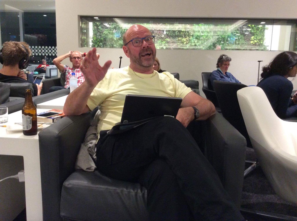Now in the Koru lunge at Auckland. A quick skip through duty free. Not much bought. We’re having to be careful with our luggage – the Ryanair flights to and from Spain restrict us to 20kg which is quite a challenge for us!! But did get myself some Kiehls Age Defender Eye Repair – lifting, anti-wrinkle, dark circle reducing eye cream for men. Given that it cost nearly $4 a ml I’m expecting significant results!!